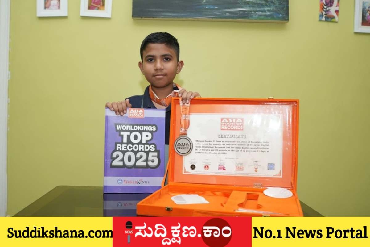 ದಾವಣಗೆರೆ: ಗಾಂಧಾರಿ ವಿದ್ಯೆಯಲ್ಲಿ ನಗರದ ವಿಶ್ವಚೇತನ ವಿದ್ಯಾನಿಕೇತನ ಶಾಲೆಯ 7ನೇ ತರಗತಿ ವಿದ್ಯಾರ್ಥಿ ಎನ್.ಶಿವರಾಜ್ ಗೌಡ್ರು ಏಷ್ಯಾ ಬುಕ್ ಆಫ್ ರೆಕಾರ್ಡ್ಗೆ ಸೇರ್ಪಡೆಯಾಗಿದ್ದಾರೆ.