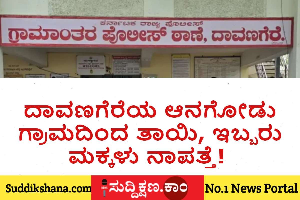 ದಾವಣಗೆರೆ: ದಾವಣಗೆರೆ ಗ್ರಾಮಾಂತರ ಪೊಲೀಸ್ ಠಾಣೆ ವ್ಯಾಪ್ತಿಯ ಆನಗೋಡು ಗ್ರಾಮದಲ್ಲಿ ತಾಯಿ ಮತ್ತು ಮಕ್ಕಳು ಕಾಣೆಯಾಗಿರುವುದಾಗಿ ದೂರು ದಾಖಲಾಗಿದೆ.