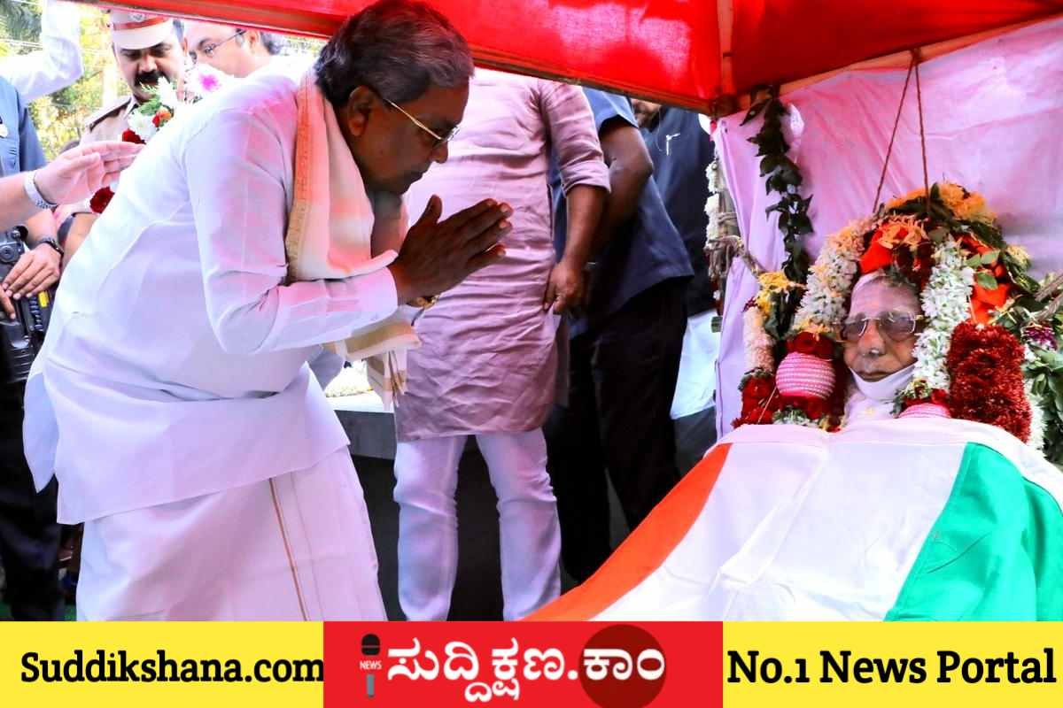 ರಾಷ್ಟ್ರಗೀತೆ ಹಾಡುವ ಮೂಲಕ ಗೌರವ ವಂದನೆ ಸಲ್ಲಿಸಲಾಯಿತು. ಪಾರ್ಥಿವ ಶರೀರದ ಮೇಲೆ ರಾಷ್ಟ್ರಧ್ವಜ ಹೊದಿಸಿ ಮುಖ್ಯಮಂತ್ರಿಗಳ ಸಮ್ಮುಖದಲ್ಲೇ ಗಾಳಿಯಲ್ಲಿ 3 ಸುತ್ತು ಗುಂಡು ಹಾರಿಸಿ ಅಂತಿಮ ನಮನ ಸಲ್ಲಿಸಲಾಯಿತು.