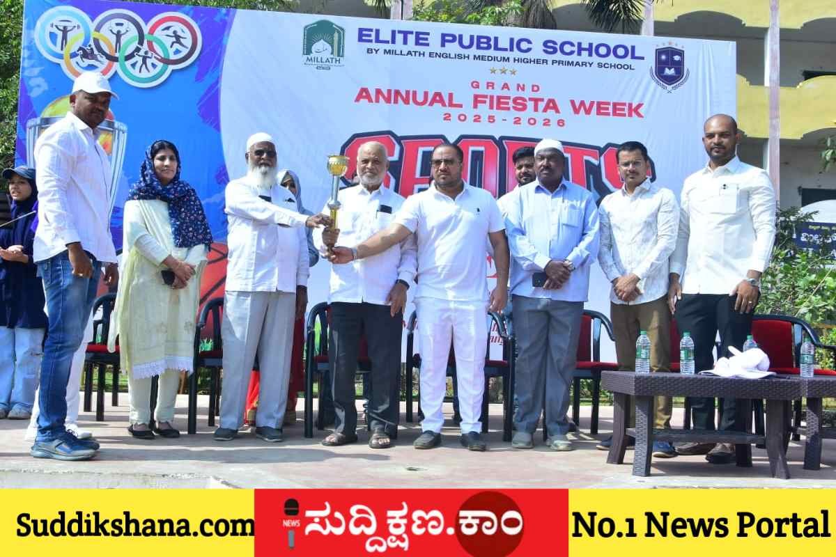 ದಾವಣಗೆರೆ: ನಗರದ ಮಿಲ್ಲತ್ ಕ್ಯಾಂಪಸ್ನ ಎಲೈಟ್ ಪಬ್ಲಿಕ್ ಶಾಲೆಯಲ್ಲಿ ಕ್ರೀಡಾ ದಿನಾಚರಣೆ ಹಾಗೂ ವಾರ್ಷಿಕ ಫಿಯೆಸ್ಟ್ ವೀಕ್ ಕಾರ್ಯಕ್ರಮಕ್ಕೆ ಚಾಲನೆ ನೀಡಲಾಯಿತು.